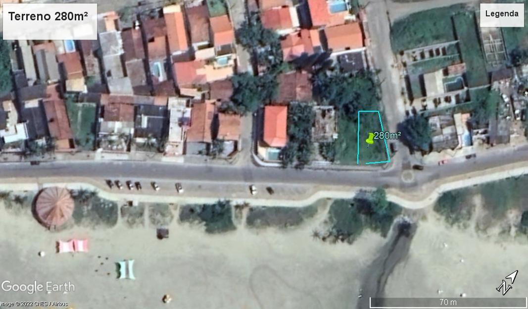 - Lote de terreno Frente Mar com 14m de frente, 26m de uma lado e 25m do outro e 8m no fundo